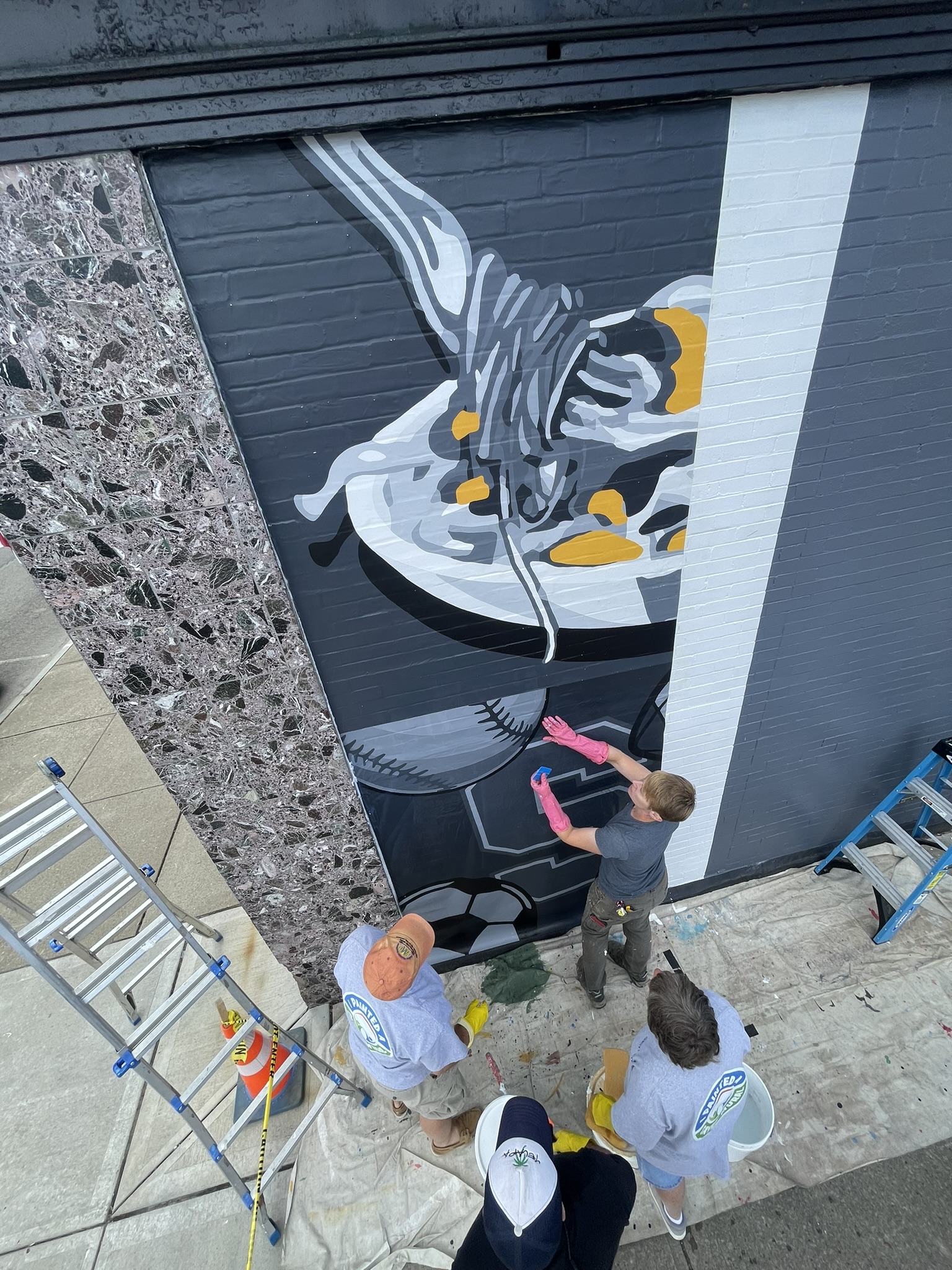 Dana Twigg – An Artist and Educator with a distinguished 35-year tenure as an art teacher in the Sayre Area School District. Now retired, Dana has embraced a flourishing art career across various mediums. Also enlisted as a lead artist, his contributions to the project were invaluable, showcasing his artistic talent and leadership in guiding community painting sessions, the installation, and overseeing the project from start to finish.